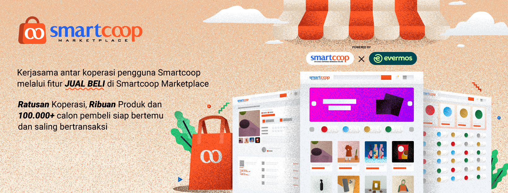 Smartcoop bekerjasama dengan EVERMOS sebuah platfrom Social Commerce terbesar di Indonesia yang saat ini memiliki pangsa pasar lebih dari 1.000.000 members, 250.000 Reseller dan telah melayani transaksi lebih dari 1 juta transaksi. Hal ini menjadi potensi keuntungan yang bbesar bagi koperasi dan anggota pengguna Smartcoop marketplace.